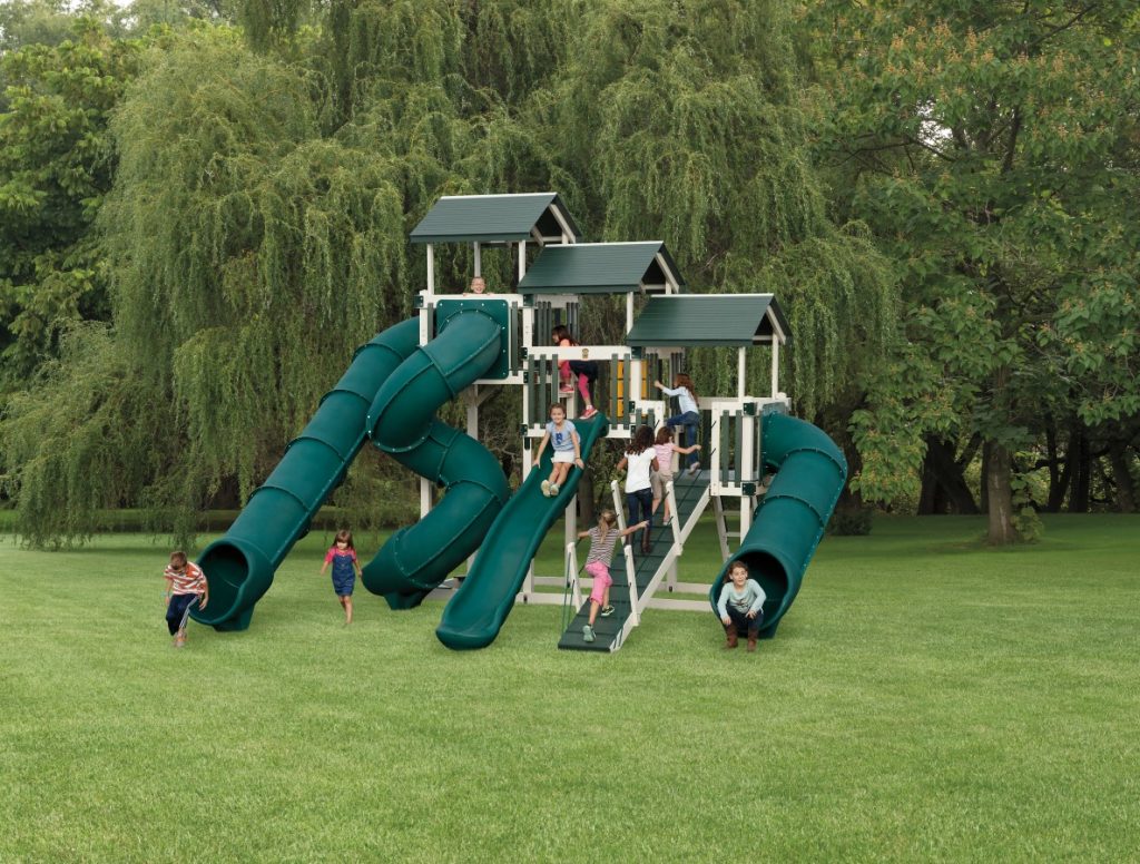 Playtime never ends with this over-sized play set that’s overflowing with fun. This playset includes four slides, three levels of decking, and a gang plank that guarantee hours of backyard amusement.